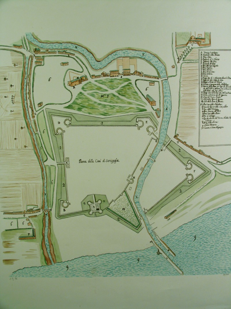 Pianta di Senigallia con i due ponti prima dell'Ampliazione settecentesca