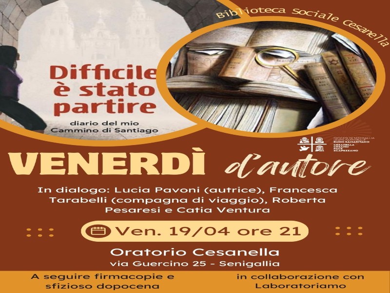 Presentazione del libro-diario di Lucia Pavone che racconta il suo Cammino di Santiago, con ” le emozioni, le sensazioni, le difficoltà, le paure e le ansie” che tale pellegrinaggio ha comportato.