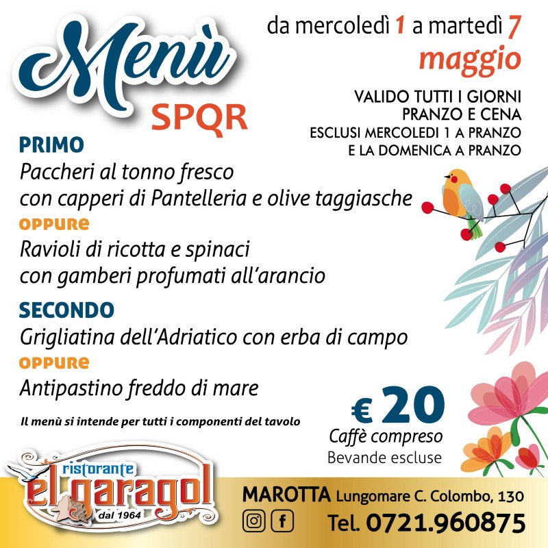Ristorante El Garagol - Menu della settimana dal 1 al 7 maggio 2024