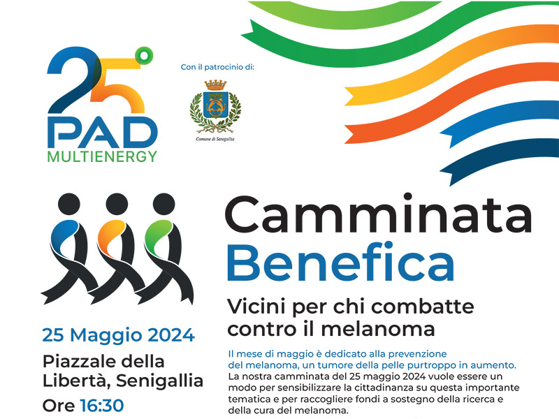 Sabato 25 maggio 2024, PAD Multienergy, in collaborazione con rinomati sponsor e partner, ha il piacere di invitare la comunità a un evento di straordinaria importanza: la Camminata Benefica per la prevenzione del melanoma, che partirà da Piazzale della Libertà a Senigallia.