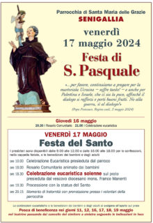 La Parrocchia di Santa Maria delle Grazie in Senigallia invita alla tradizionale festa di San Pasquale Baylón, venerdì 17 maggio 2024.