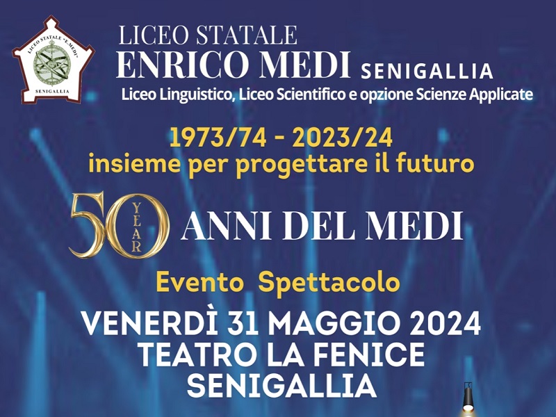 Venerdì 31 maggio 2024 alle ore 21.00 presso il Teatro La Fenice di Senigallia si terrà l’evento spettacolo per i 50 anni del Liceo Medi.