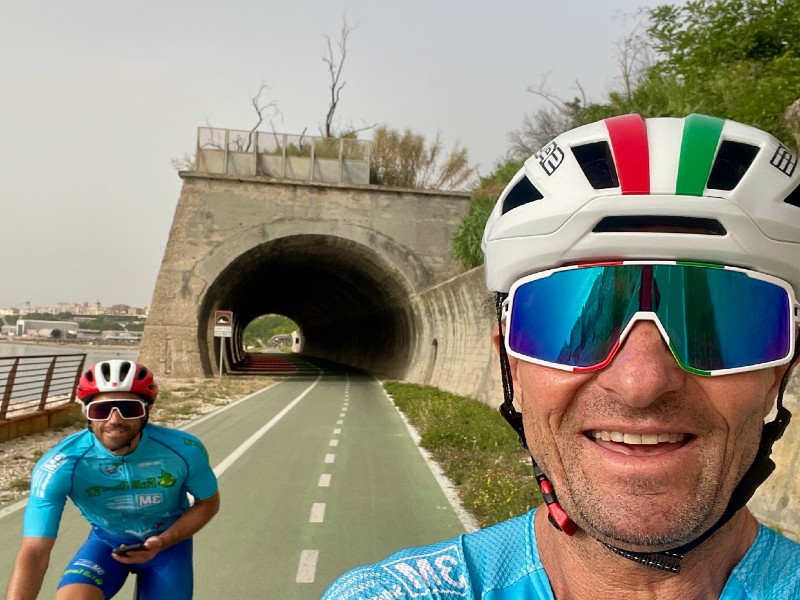 ardua. Alessandro Giampaola che lo proteggeva e supportava in bici infatti, a malincuore per motivi professionali sportivi, venerdì sera ha dovuto far rientro. Continua in solitaria quindi la conquista di Santa Maria di Leuca per Mauro che ha quasi già guadagnato una tappa di vantaggio rispetto alla pianificazione programmata, rimanendogli ancora circa 275 chilometri.