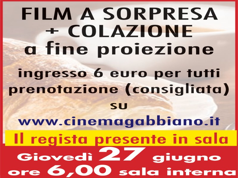 Questi appuntamenti in concomitanza con i primi bagliori del sole sono ormai un successo consolidato e registrano puntualmente un’ottima partecipazione di pubblico (in media 130 presenze). Ma il prossimo sarà se possibile ancora più speciale: giovedì 27 giugno alle 6 del mattino sarà infatti presente in sala anche il regista del film in programma, un nome tra l’altro di assoluto rilievo per i botteghini del cinema italiano e che ha espresso l’intenzione di assistere di persona agli ormai celebri Extra Time del Gabbiano. La sua presenza raddoppierà l’emozione, garantendo a tutti i presenti una mattinata davvero particolare, da vivere insieme davanti alla magia del grande schermo.