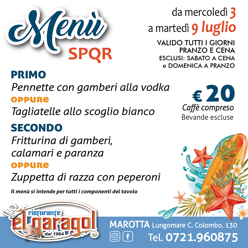 Ristorante El Garagol - Menù SPQR dal 3 al 9 luglio
