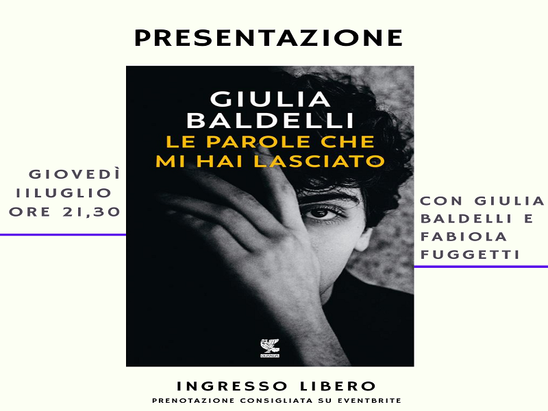 L’ingresso è libero, ma si consiglia la prenotazione al seguente link: https://www.eventbrite.it/e/presentazione-romanzo-di-giulia-baldelli-le-parole-che-mi-hai-lasciato-tickets-943363905837.