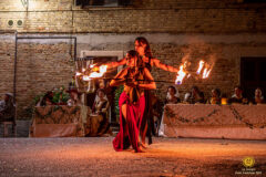 La serata entrerà nel vivo alle ore 21.00 con l’esibizione di danza aerea a cura di “Planet Fitness” di Senigallia presso l’accampamento (replica ore 21.50), con le acrobazie in cielo degli sbandieratori “Combusta Revixi” di Corinaldo alle ore 21.15 e con lo spettacolo messo in scena dal gruppo “Crux Dorica” di Ancona alle ore 22.00, in attesa del grande corteo storico delle ore 22.30.