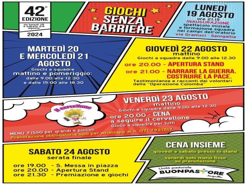 Ecco il programma dell’edizione n. 42 dei Giochi Senza Barriere, che si svolgerà nei campi da gioco della parrocchia in via Gramsci e in piazza della Vittoria.