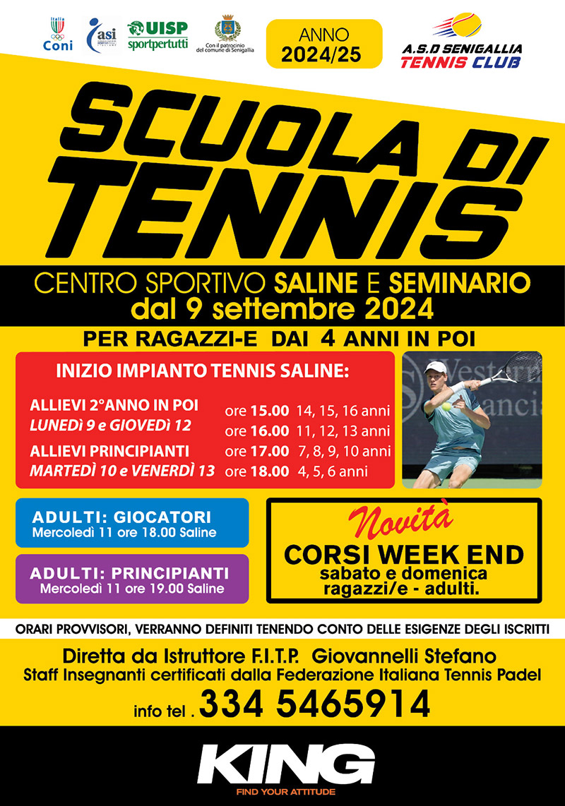 Scuola di tennis 2024/25 dell'ASD Senigallia Tennis Club