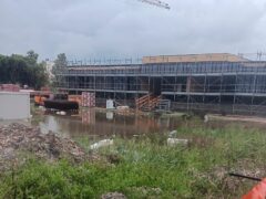 Cantiere nuova scuola Arcobaleno allagatoProprio in quella zona, si sono registrati anche il guasto che costringerà a diversi giorni di chiusura la Piscina Saline, nei cui locali tecnici è entrato fango (info per la riapertura su www.salinescsenigallia.it), e l’allagamento (circostanza comune a molti cantieri) dell’area in cui sono in costruzione le nuove scuole media Marchetti e dell’infanzia Arcobaleno, insieme alla nuova palestra polifunzionale. Il terreno si è trasformato letteralmente in un lago, ma le strutture edificate sono rialzate e a costruzione conclusa anche l’area esterna dovrà essere messa al riparo da questi eventi.
