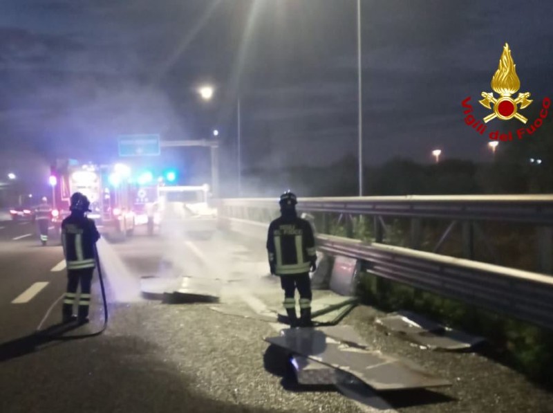 Incendio in autostrada, intervengono i vigili del fuoco di Senigallia