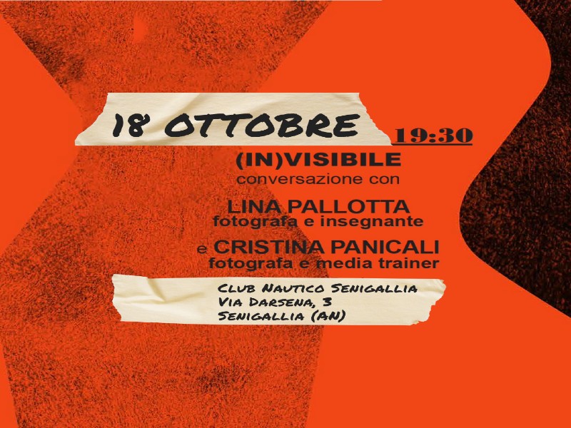 Venerdì 18 ottobre 2024, alle ore 19.30 al porto di Senigallia, nello spazio messo a disposizione dal Club Nautico, potremo conversare con Lina Pallotta, fotografa documentarista di alto profilo internazionale, in dialogo con Cristina Panicali, fotografa e media trainer di Senigallia. Il titolo (IN)VISIBILE è altamente evocativo della tematica che intendiamo indagare e approfondire. L’identità ancora così necessaria per vivere in questa società standardizzata, di fatto è una parola senza senso, viviamo in un momento storico in costante mutazione e metamorfosi, che impone quindi cambiamenti di culture e trasformazioni sociali. Le minoranze, marginalizzate da questa società, di fatto, aprono nuove prospettive e ci aiutano ad abbattere la povertà della nostra immaginazione altrimenti bloccata da standard stereotipati. Il linguaggio fotografico è un codice comunicativo che opera oltre e al di là della parola, ne riconosciamo la grande rilevanza soprattutto e anche in un momento storico dove la visibilità e le rappresentazioni producono un approccio consumistico alle immagini.