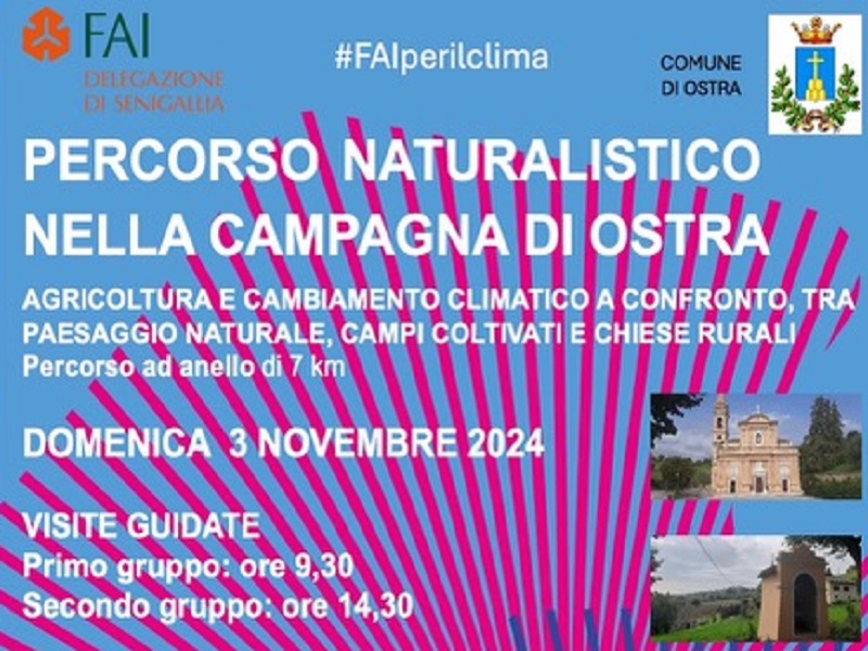 La Delegazione FAI di Senigallia nell’ambito della campagna #faiperilclima di sensibilizzazione ed attivazione sul tema urgentissimo del cambiamento climatico propone una passeggiata a tappe di 7 Km, in collaborazione con il Comune di Ostra.