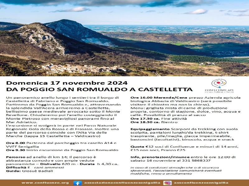 L’associazione Confluenze organizza per Domenica 17 novembre 2024 una escursione storico naturalistica Da Poggio San Romualdo a Castelletta .