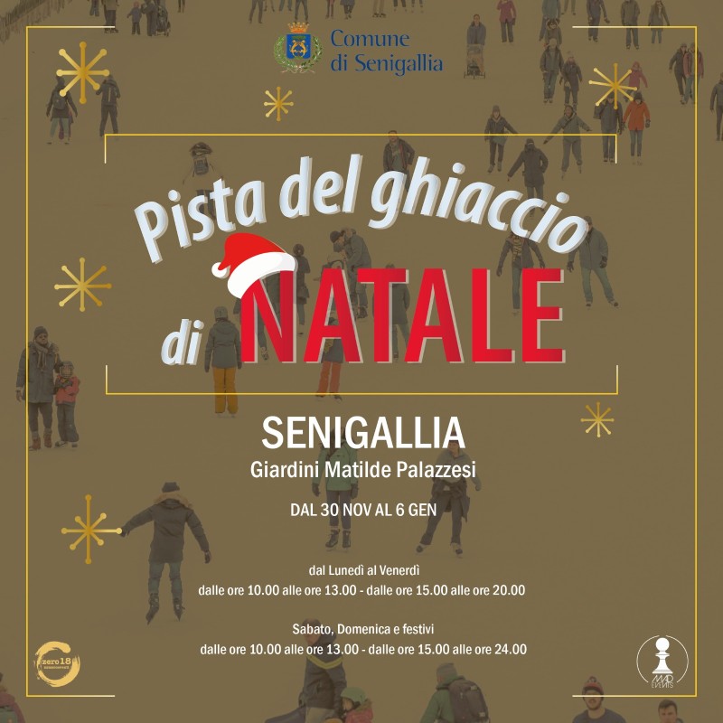 La pista di pattinaggio sarà aperta a tutti. Fino al 23 dicembre, dal lunedì al venerdì, dalle 10 alle 13 e dalle 15 alle 20; sabato, domenica e festivi, dalle 10 alle 13 e dalle 15 alle 24. Dopo il 23 dicembre ingresso tutti i giorni dalle 10 alle 13 e dalle 15 alle 24. L’iniziativa è realizzata dalle associazioni Mad Events e Zero18 Non Solo Eventi, con il patrocinio del Comune di Senigallia.