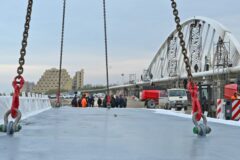 Posa dell'ultimo concio del Ponte ciclopedonale sul fiume Cesano