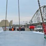 Posa dell'ultimo concio del Ponte ciclopedonale sul fiume Cesano