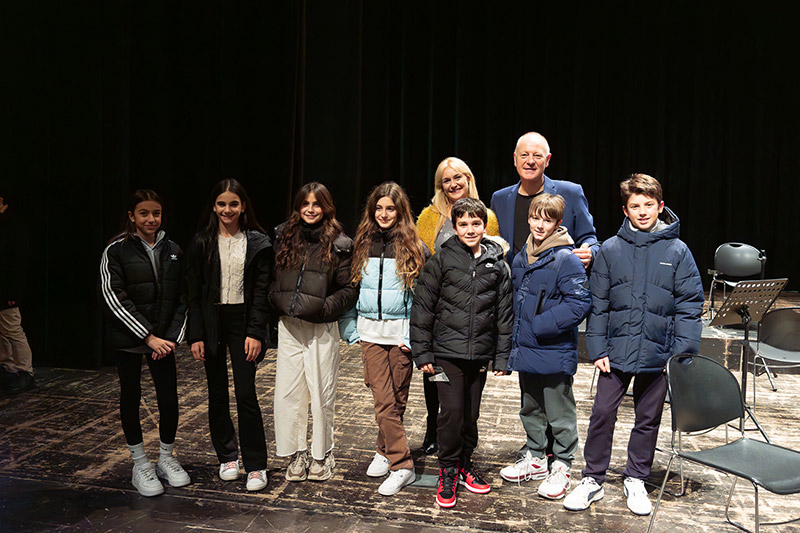 La professoressa Maestra Elena solai ed il Maestro Federico Mondelci con alcuni alunni della scuola Fagnani - Foto Simone Luchetti