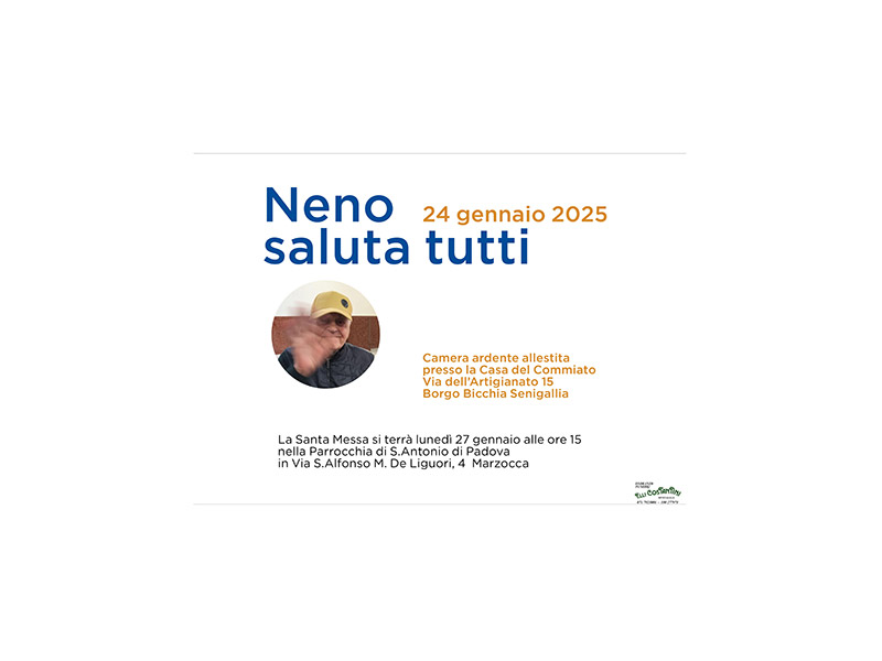 La Santa Messa si terrà lunedì 27 gennaio alle ore 15 nella Parrocchia di S. Antonio di Padova in via S. Alfonso M. De Liguori 4 Marzocca.