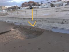 Martedì 28 gennaio 2025 abbiamo ricevuto la segnalazione di alcuni residenti che il fosso di Sant’Angelo alla sua foce a mare presso il Ponterosso è da diversi mesi completamente insabbiato, tanto che le paratie mobili che dovrebbero permettere il deflusso delle acque sono tutte bloccate e l’acqua defluisce soltanto dalle fessure.