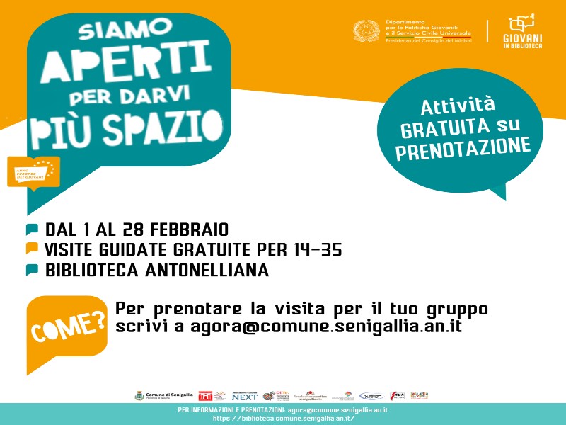 La mostra “Effetti collaterali” resterà allestita nella sezione adulti della Biblioteca Antonelliana fino al 28 febbraio, è a ingresso gratuito ed è fruibile in orario di apertura della biblioteca stessa. Le visite invece vanno prenotate e sono dedicate a gruppi, non a singole persone, con età tra i 14 e i 35 anni: per prenotarsi è sufficiente scrivere una mail ad agora@comune.senigallia.an.it con qualche giorno di anticipo e i gruppi dovranno avere un minimo di 6 persone.
