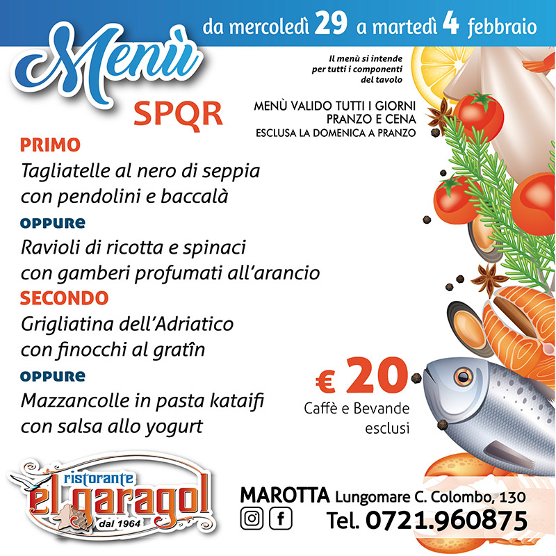 Ristorante El Garagol - Menu della settimana dal 29 gennaio al 4 febbraio 2025