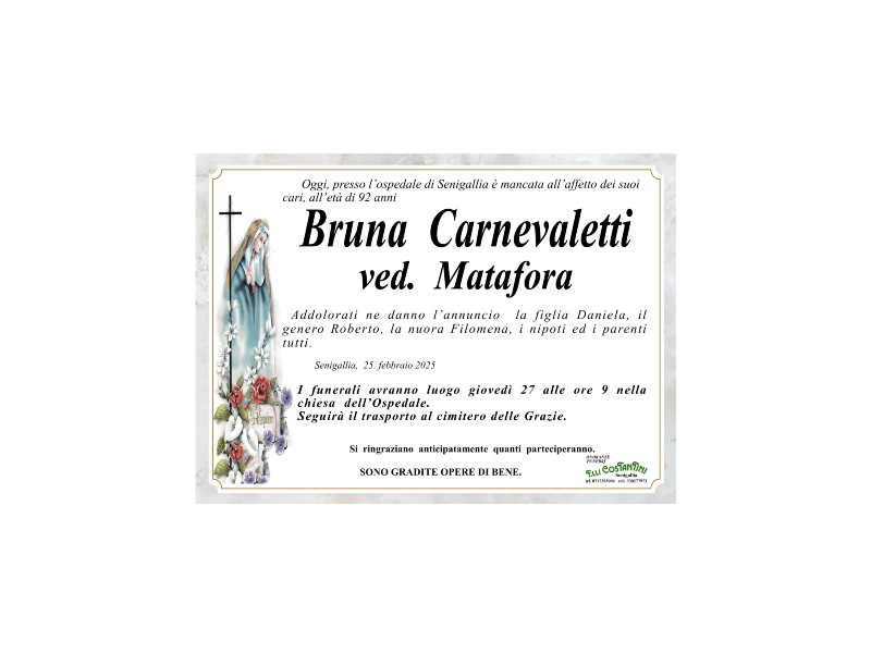 Bruna Carnevaletti, ved. Matafora, è mancata all’affetto dei suoi cari