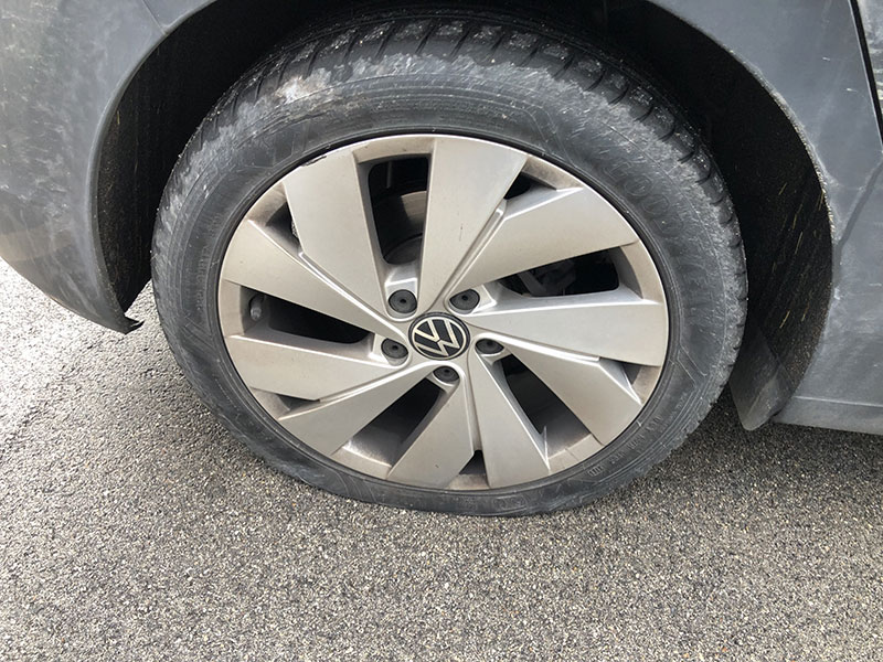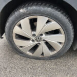 Gomme danneggiate per una grossa buca in strada a Sterpettine di Mondolfo