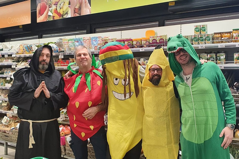 Staff in maschera per il Carnevale al Conad City di Cesanella a Senigallia