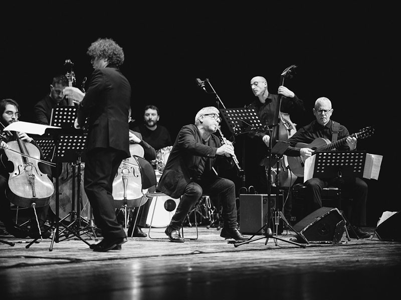 Fin dalle prime note è emerso il perfetto equilibrio tra la compattezza ritmica del quartetto di base (batteria, basso, chitarra e clarinetto) e l’apporto orchestrale, capace di donare una dimensione onirica alla musica senza mai soffocarne la leggerezza intrinseca. Merito di una direzione attenta e ispirata: Massimo Morganti ha saputo valorizzare ogni sfumatura timbrica, accompagnando con intelligenza e sensibilità il lavoro degli strumentisti. Gli archi, i fiati e le percussioni, lontani dall’essere un semplice abbellimento, hanno contribuito a tessere un raffinato gioco di contrasti e armonie, restituendo alla musica di Jobim la sua complessità strutturale e il suo respiro universale.