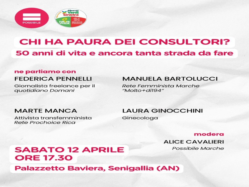 Il partito Possibile, insieme ad Alleanza Verdi-Sinistra, invita la cittadinanza al Palazzetto Baviera, Piazza del Duca di Senigallia, sabato 12 aprile alle 17.30.