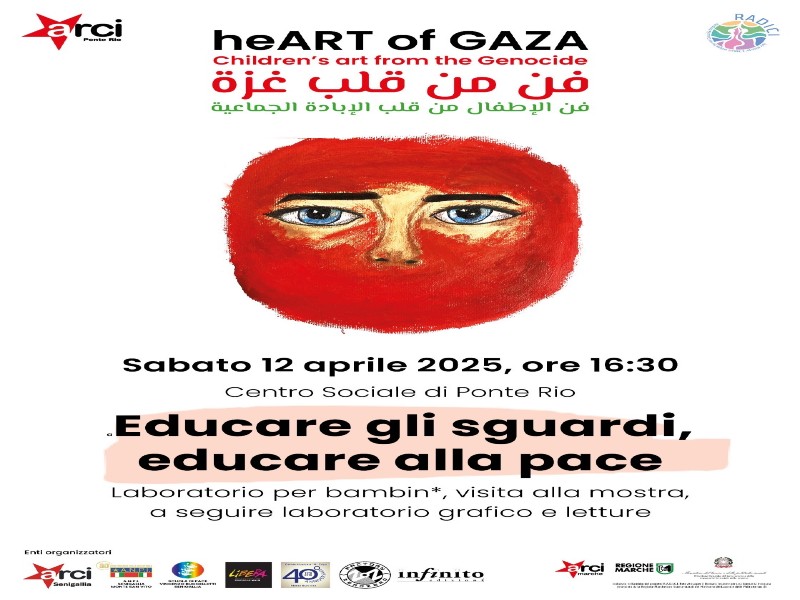 Sabato 12 aprile al Circolo Arci A.Cervi Aps di Ponte Rio è stata inaugurata HeARTof Gaza, l’arte dei bambini del genocidio, una mostra di disegni di bambini e bambine che vivono al centro della Striscia di Gaza.