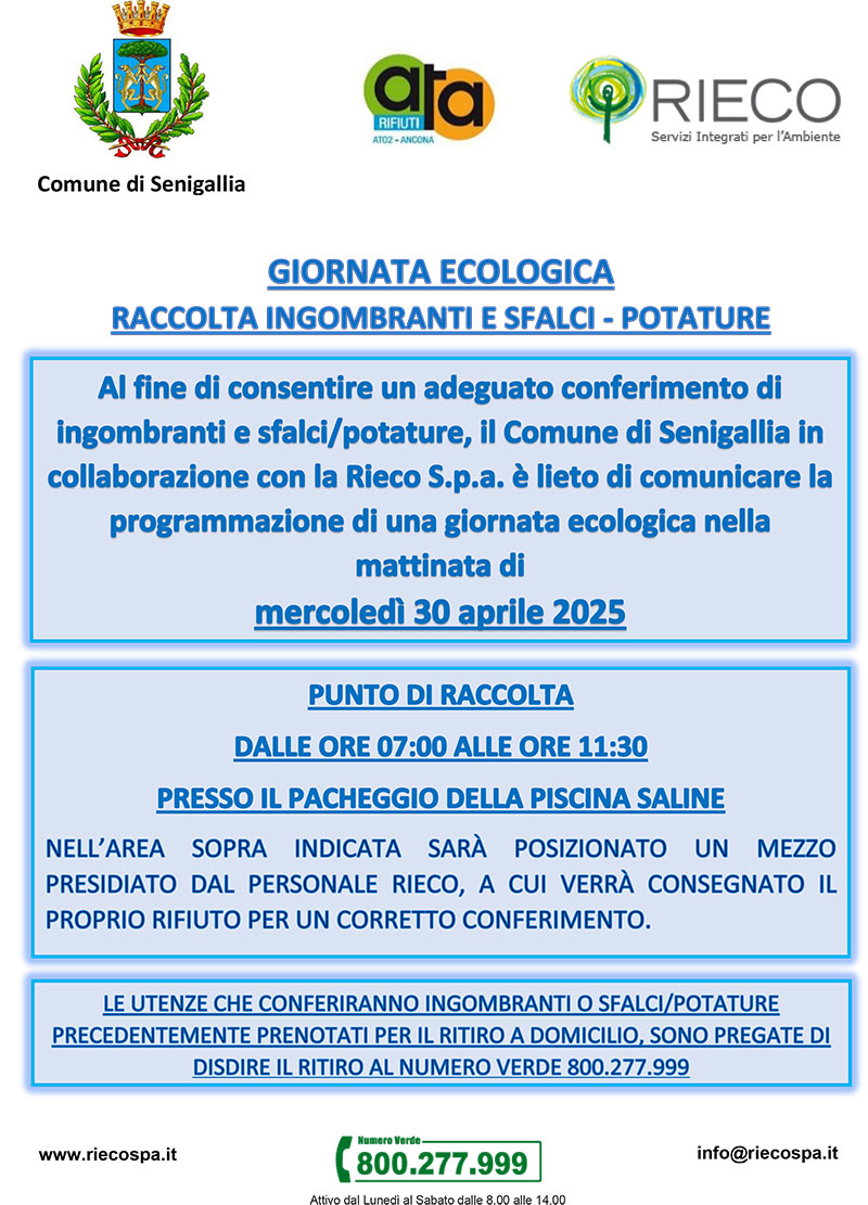 Giornata di raccolta di sfalci, potature e rifiuti ingombranti il 30/04/2025