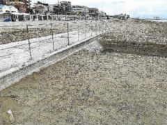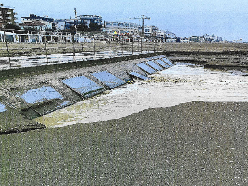 In questo momento l’uscita a mare di una eventuale piena del fosso è impedita da sabbia accuratamente riportata a ridosso del manufatto in calcestruzzo lasciando libera solamente la ‘’portella centrale’’ All.3 e All.4