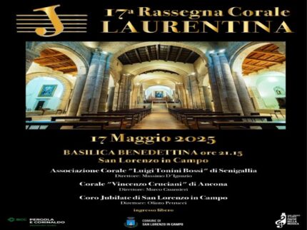la Rassegna vedrà la partecipazione del Coro Jubilate di San Lorenzo in Campo diretto dal M° Olinto Petrucci, promotore della rassegna, e della Corale “Vincenzo Cruciani” di Ancona diretto dal M° Marco Guarnieri; l’evento si svolgerà nella splendida cornice della Abbazia Benedettina romanico-gotica di San Lorenzo in Campo, uno dei monumenti più belli della Regione.-