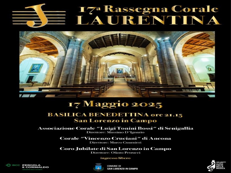 Il Coro Luigi Tonini Bossi di Senigallia diretto dal M° Massimo D’Ignazio è lieto di comunicare la propria partecipazione alla “17° Rassegna Corale Laurentina” programmata per il 17 Maggio 2025 alle ore 21,15;