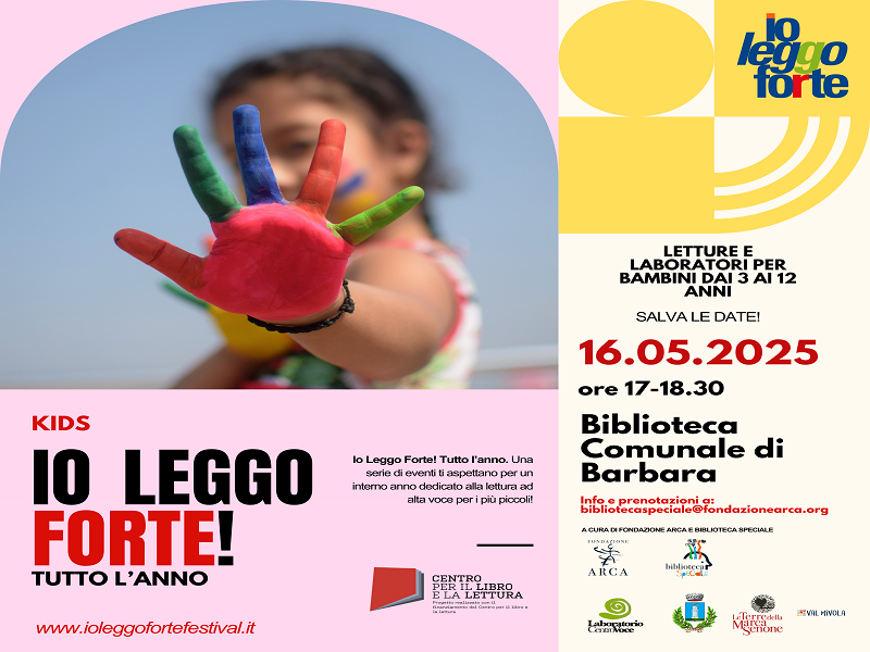 Se amate i libri e volete trascorrere momenti speciali con i vostri piccoli, non potete perdervi gli eventi di IO LEGGO FORTE! Tutto l’anno KIDS, un’iniziativa che porta letture animate e laboratori nella Biblioteca Comunale di Barbara venerdì 16 maggio dalle 17 alle 18.30. Un’occasione unica per scoprire il magico mondo della lettura insieme ai vostri bambini dai 3 ai 12 anni!