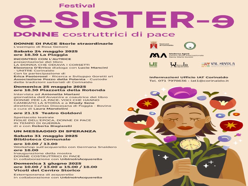 Torna, a Corinaldo, il Festival “e-SISTER-e: la voce delle donne”, con la terza edizione dedicata alle “donne costruttrici di pace”; tematica che nasce dal desiderio e dal bisogno di pensare ad un mondo pacifico.