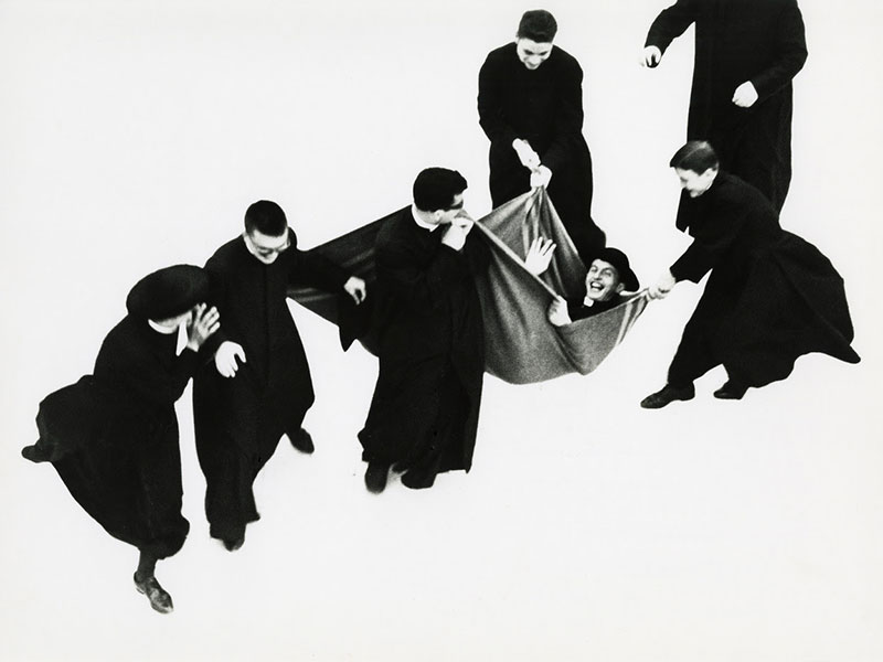 Cuore pulsante della mostra è una sala dedicata alla straordinaria serie Io non ho mani che mi accarezzino il volto (1961/63), ispirata alla poesia di Padre David Maria Turoldo, il cui titolo diventa emblema visivo e concettuale di un’opera intensa e senza tempo. Le immagini dei giovani seminaristi, sospese tra innocenza e inquietudine, movimento e contemplazione, trasformano il quotidiano in una danza tra laico e spirituale.