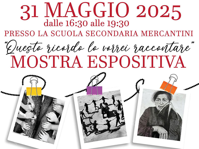 La mostra, allestita al piano terra della scuola “Mercantini”, verrà inaugurata sabato 31 maggio alle 16:30 e sarà visitabile fino alle 19:30. Resterà, inoltre, aperta al pubblico anche nei pomeriggi del 3 e 4 giugno 2025.