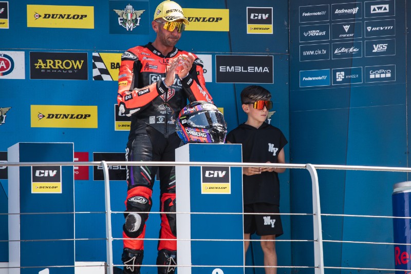 “Il campionato inizia ad essere molto competitivo, con il Team stiamo lavorando bene, anche se di tanto in tanto qualcosa ci sfugge. Le due gare sono state molto combattute e trovarsi a competere Production Bike e SBK non ti permette di rilassarti neanche un secondo. Infatti in gara due ho perso qualche secondo prezioso proprio lottando con un pilota SBK e così è sfumato il secondo podio. Ma questo fa parte del gioco e ci sta. Al momento mi preoccupa un po’ di più l’uso dell’elettronica, sembra che non tutti abbiamo le stesse regole, di sicuro non è così ma il dubbio viene. L’highsize che ho subito in gara 1 ne è un po’ il segnale, ho provato a spingere un pò di più ma ho dovuto rallentare il passo per non rischiare ancora di più e comunque ho mantenuto la posizione ed il podio e di questo ne sono felice”.
