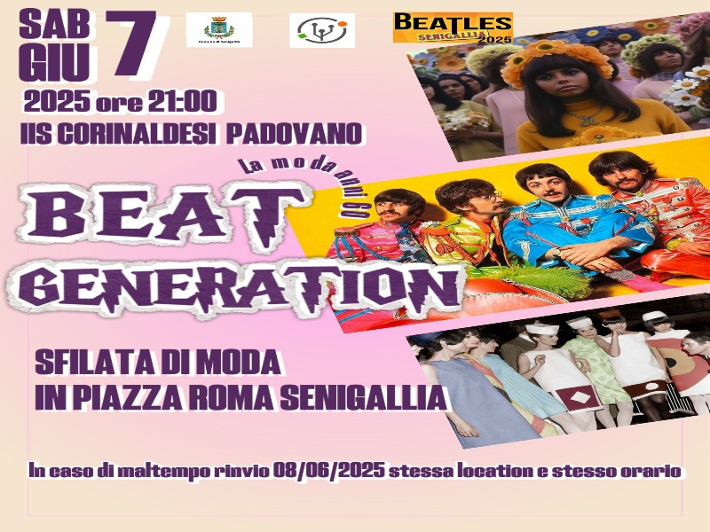 Sabato 7 giugno alle ore 21.00 nella centralissima Piazza Roma di Senigallia, l’evento “Beat Generation: Moda e Musica dei Beatles”, organizzato dall’Istituto di Istruzione Corinaldesi Padovano in collaborazione con “Beatlesenigallia”, conclude l’anno scolastico 2024 – 2025.