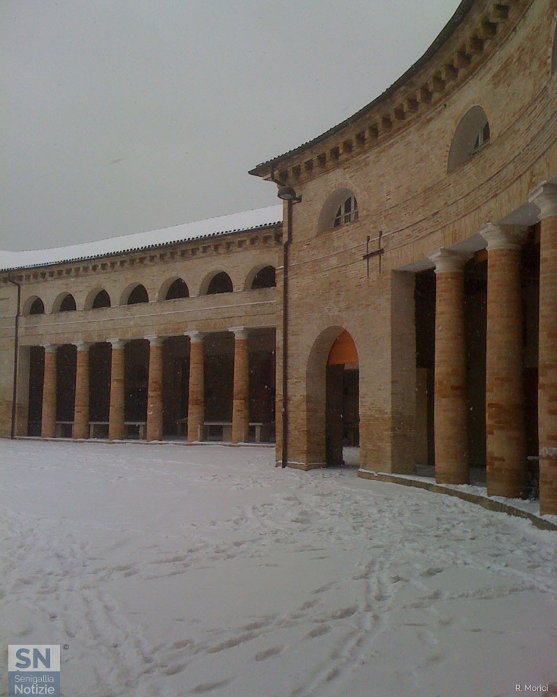 Per la rubrica “Una Foto al Giorno”, lo scatto scelto per la giornata di mercoledì 9 luglio è stato realizzato da Rossano Morici ed è intitolato “Foro Annonario innevato il 5 febbraio 2012”.
