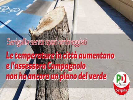 Abbiamo strade assolate con asfalti luccicanti nuovissimi e pseudo piste ciclabili ma spesso piene di macchine parcheggiate, marciapiedi impraticabili con aiuole non custodite e, soprattutto, senza un filo d’ombra. Come ricordato dal professor Stefano Mancuso, in un recente articolo pubblicato su Repubblica “Fa caldo. Ma soprattutto: farà sempre più caldo”. È sempre più urgente riflettere e far riflettere i nostri concittadini sulla linea politica intrapresa dall’assessora Campagnolo per Senigallia che, in oltre 4 anni di governo, è stata la promotrice dell’abbattimento di oltre 460 alberi sul territorio cittadino senza un piano serio e strutturato di compensazione non solo della CO2 ma soprattutto di quello che sta diventando un bene prezioso per ogni centro urbano: spazi freschi, zone di refrigerio in cui poter passeggiare o sostare. Anche lo stesso lungomare di Senigallia, il luogo per eccellenza del passeggio, è ormai diventato una strada affollata (di macchine) e luogo di sosta di biciclette e motocicli ed è facile capirne il motivo: manca la piacevolezza della passeggiata ombreggiata. Gli unici spazi d’ombra in cui possiamo sperare sono quelli generati dai palazzi o dalle strutture balneari: lo stesso Mancuso, ricorda che non è la stessa cosa “c’è l’ombra, ma resta il caldo, mentre gli alberi raffreddano perché traspirano acqua assorbendo calore, funzionando come una sorta di condizionatori naturali”. Con le parole del professor Mancuso, torniamo al 24 marzo 2022 e al comunicato dell’assessora Campagnolo* con cui, appena eletta, annunciava quello che sarebbe stato il manifesto del suo mandato “la manutenzione urgente di 240 tamerici e l’abbattimento di un numero imprecisato di piante” (cit. Un numero preciso degli alberi che saranno abbattuti ancora non c’è”) proprio sul lungomare di Senigallia. Di questa “imprecisione” ne vediamo ora le conseguenze: su un lungomare già affaticato dalla pericolosità, dallo smog e dalla confusione del traffico automobilistico (senza alcuna politica di miglioramento) si aggiungono tratti assolati e quasi impraticabili ai pedoni per caldo e l’assenza di ombra. Ne rimane traccia nelle aiuole vuote che dopo l’abbattimento ad opera dell’assessora non sono state colmate con nuove specie arboree ma lasciate nell’abbandono e diventate lo spazio perfetto per i bisogni dei cani. Ci chiediamo se dal 2022 ad oggi, l’assessora Campagnolo, abbia avuto il tempo necessario per riflettere su un piano del verde urbano serio, lungimirante, basato su dati scientifici che possa garantire un futuro a questa città di tutela e protezione anche dall’emergenza climatica e dall’innalzamento delle temperature medie urbane. Oggi, 30 giugno 2025, non ci risulta ancora pubblicato tra gli atti comunali, né comunicato in modo trasparente ai cittadini e alle cittadine che, nel frattempo, andranno a rinfrescarsi nei centri commerciali.