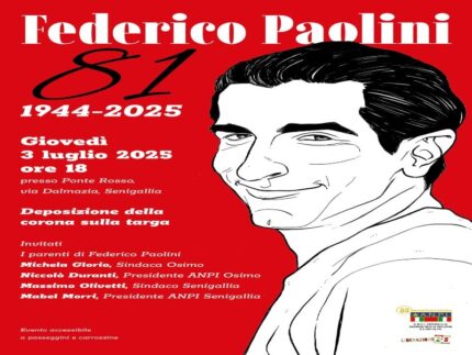 Alle 18:00, al Ponte Rosso di Senigallia, con la deposizione della corona di fiori della Presidente ANPI Senigallia, Mabel Morri, invitati Niccolò Duranti, Presidente ANPI Osimo, Michela Glorio, Sindaca di Osimo, Massimo Olivetti, Sindaco di Senigallia e i parenti di Federico Paolini.