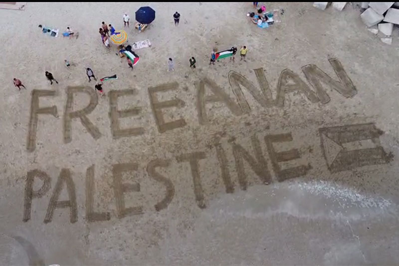 Registrato in spiaggia un filmato in solidarietà con tre giovani attivisti palestinesi incarcerati da mesi in Italia