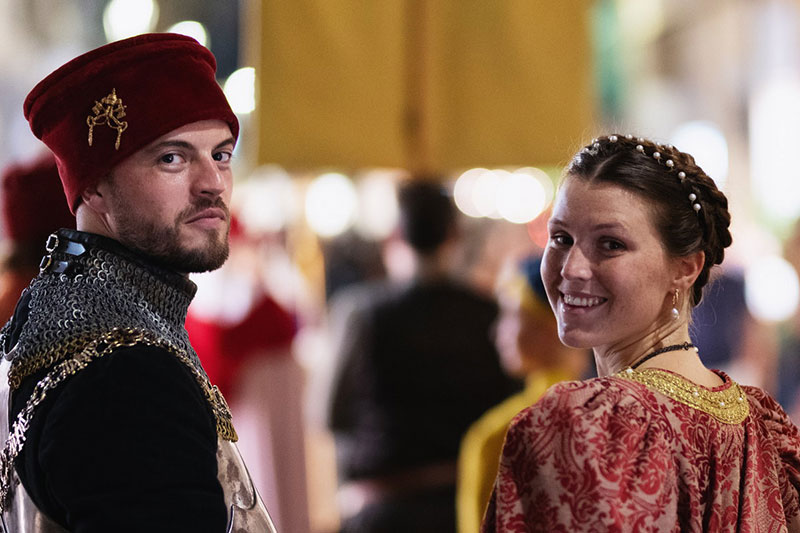 Ore 21:00 – Centro Storico: Partenza del corteo con l’arrivo del Duca e delle delegazioni ospiti, tra cui la Compagnia del Grifoncello, la Corte Malatestiana di Gradara, la Festa del Duca di Urbino e molti altri. La piazza si anima con musica medievale, grazie al Cantagallo che ci delizierà con melodie antiche e coinvolgenti.
