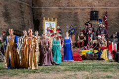 Più che una rievocazione storica, un’esperienza immersiva per ricordare l’arrivo, nel 1479 a Senigallia, del suo Signore Giovanni Della Rovere insieme alla sposa Giovanna da Montefeltro e rivivere le atmosfere di un’epoca di fermento artistico, politico e commerciale. Corteo storico, conferenze animate, living history experience, visite guidate teatralizzate, e soprattutto tanta bellezza e cura del dettaglio, in una sequenza di appuntamenti. Accanto ai fratelli Marconi un popolo di appassionati, sbandieratori, figuranti, musici, combattenti, danzatori, giullari e tanti altri interpreti del nostro passato, Un esercito di volontari diretti dal regista Michele Pagliaroni e preparati con cura certosina dal costumista Massimo Eleonori. “Il Solenne Ingresso” rappresenta un’occasione unica per scoprire le tradizioni, le sfide e la storia di Senigallia, tra spettacoli, costumi finemente riprodotti e atmosfere autentiche.