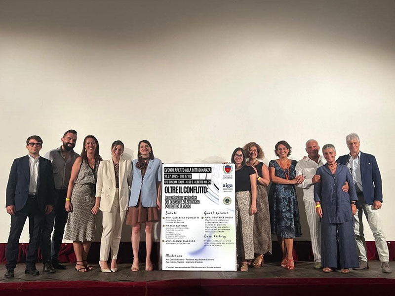 Si è tenuto giovedì 10/7, nella cornice del Cinema Italia di Ancona, l’evento aperto al pubblico “OLTRE IL CONFLITTO: La mediazione scolastica per prevenire ed affrontare ogni forma di abuso” organizzato dall’AIGA (Associazione Italiana Giovani Avvocati) sezione di Ancona, con il patrocinio ed il contributo del Comune di Ancona e dell’Ordine degli Avvocati di Ancona.