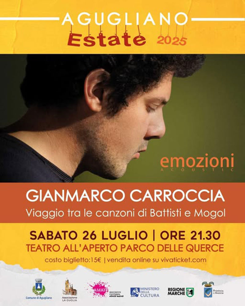 Agugliano Estate 2025: Gianmarco Carroccia canta Battisti e Mogol